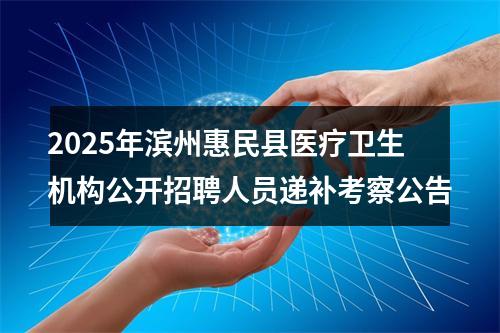 原标题:2025年惠民县医疗卫生机构公开招聘人员递补考察公告